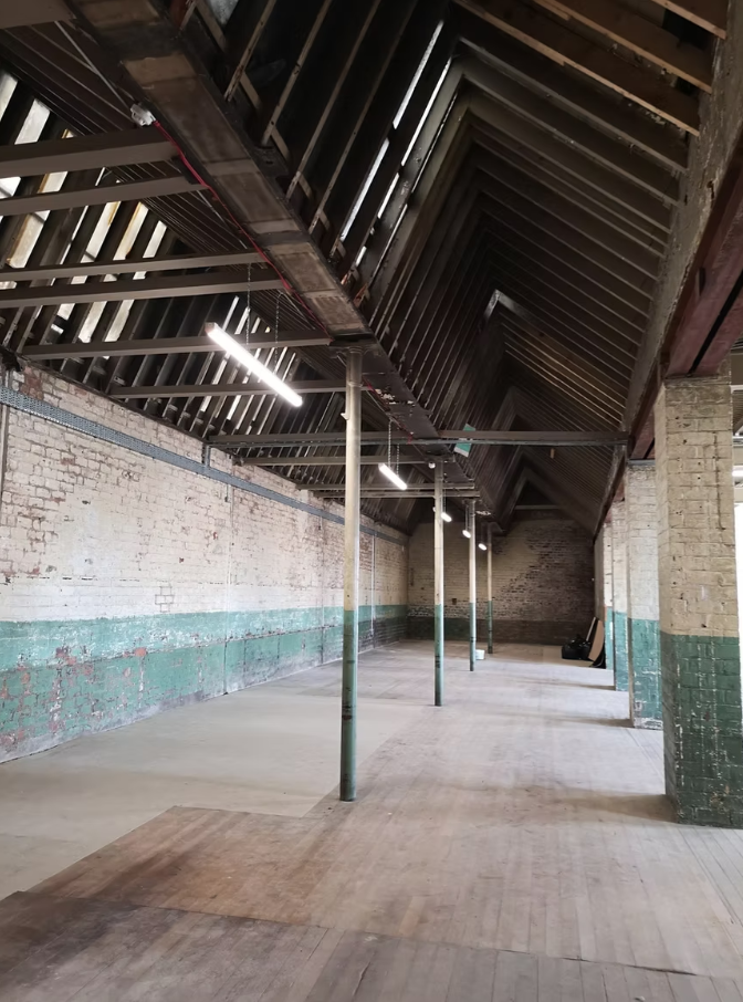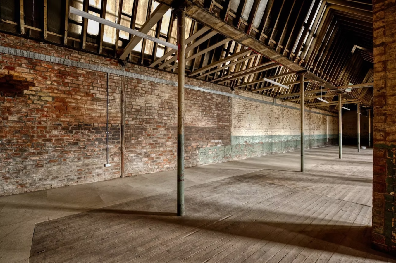 Strange Field is a small visual arts association located in the east end of Glasgow, located at 105-109 French Street, a 5-minute walk away from the Dalmarnock train station, and has been a registered Scottish charity since 2012. Strange Field is situated in a listed building with walls consisting of uncovered brick; structural support beams divide the space and destructive forms of wall mounting are prohibited. The gallery space presents a non-conventional warehouse expanse with high ceilings, large windows to the left wall of the entrance, and wooden floors. The space holds the history of its industrial past that offers unique opportunities for conceptual commentary.