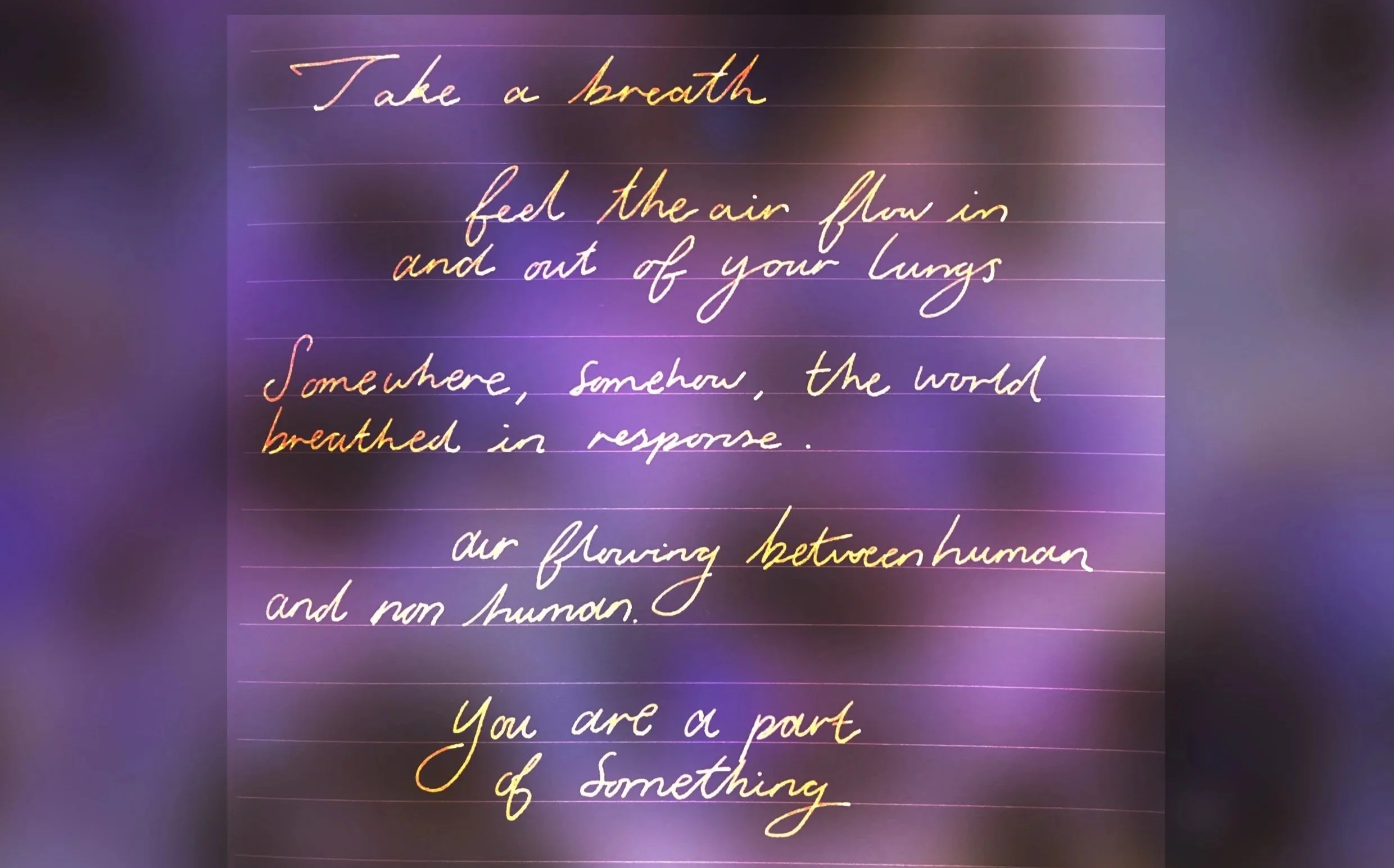 Everyone has a role within climate change, whether it is in the form of felt changes from global warming or contributing to pollution through plastic waste. Wyrdings seeks to make us aware of the repercussions of our actions as an interconnected web of humans and non-humans. As a result, regardless of individual identity or societal standing, anyone will be able participate, relate, and find introspection through engagement with this exhibition.