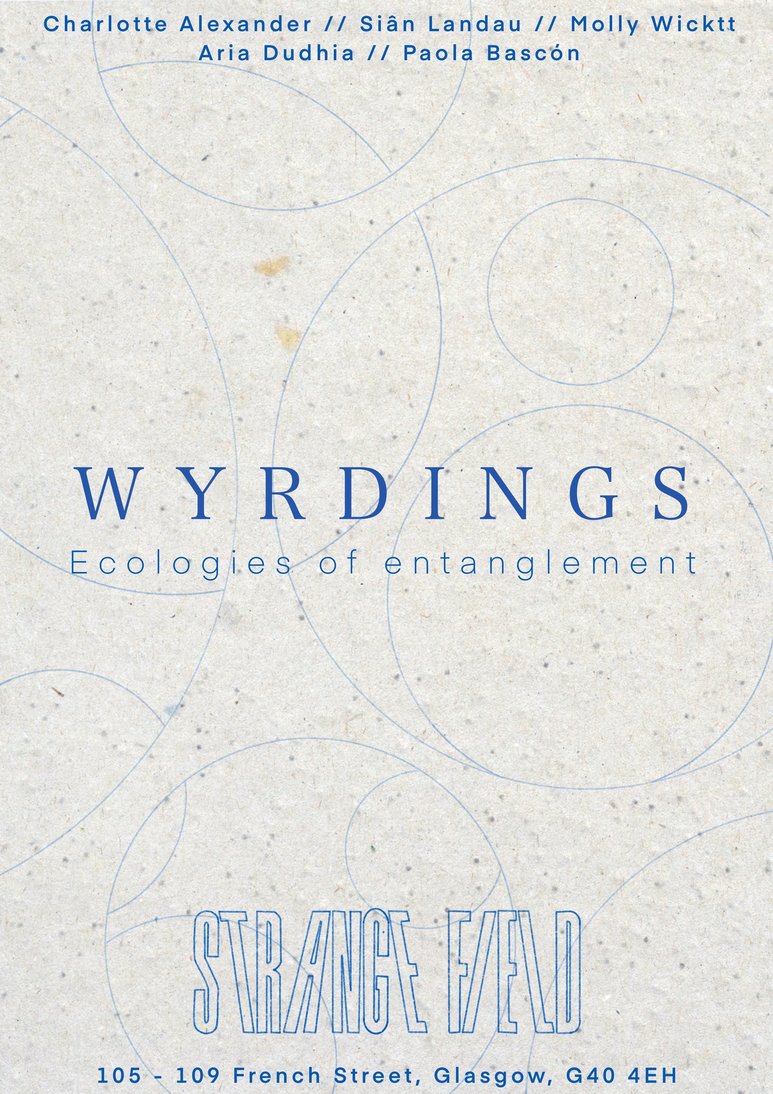 Strange Field offers a non-conventional space, which implicates the architecture and sensory experience of place into the exhibition experience. The locational history itself becomes implicated within the network of meaning that spans the gallery space and throughout the exhibition. Strategic organizational priorities present mutual concerns that Wyrdings will treat with a similar importance within this proposal.